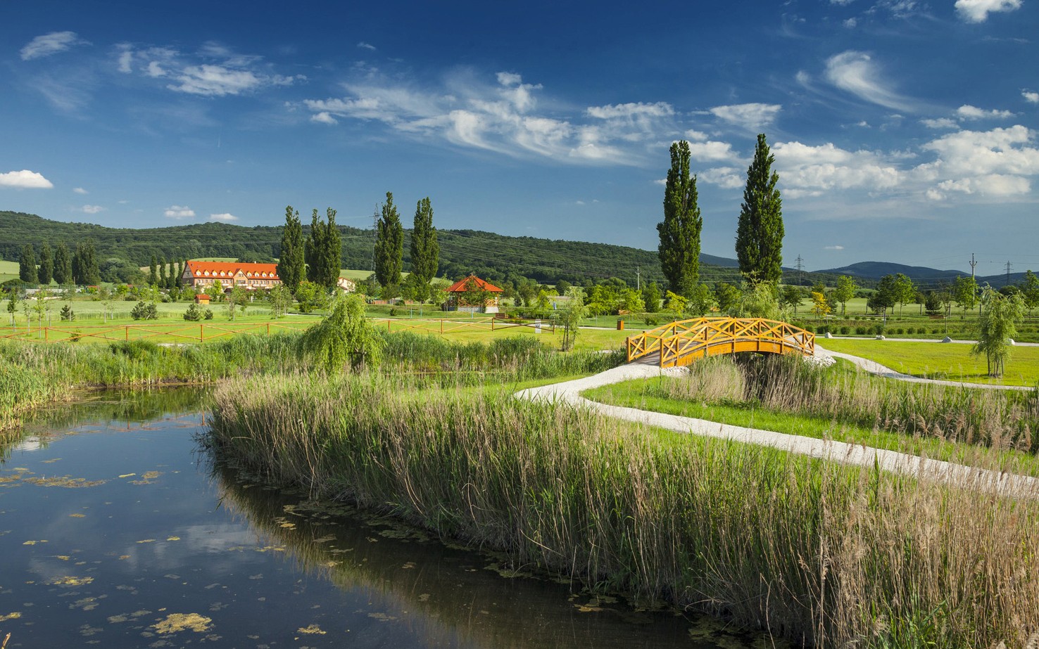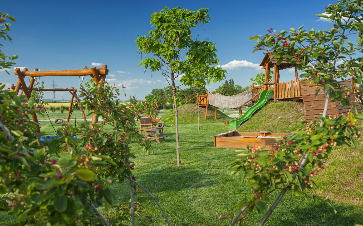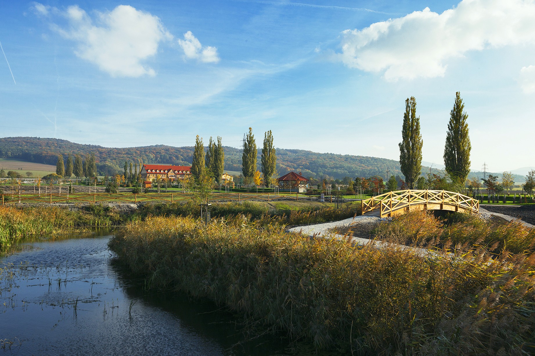 Hotelový park sa nachádza na miestach, kde po milióny rokov vo vnútri zeme zrela cenná rašelina. Po jej vyťažení v nedávnej minulosti tu ostala zem zjazvená a plná hlbokých jám. Z mesačnej krajiny sme trpezlivou a láskyplnou prácou vytvorili mladú, zelenú oázu. V našom parku nájdete zaujímavé dreviny, bylinkovú záhradu, mladý ovocný sad, romantické jazierko obrastené rákosím.